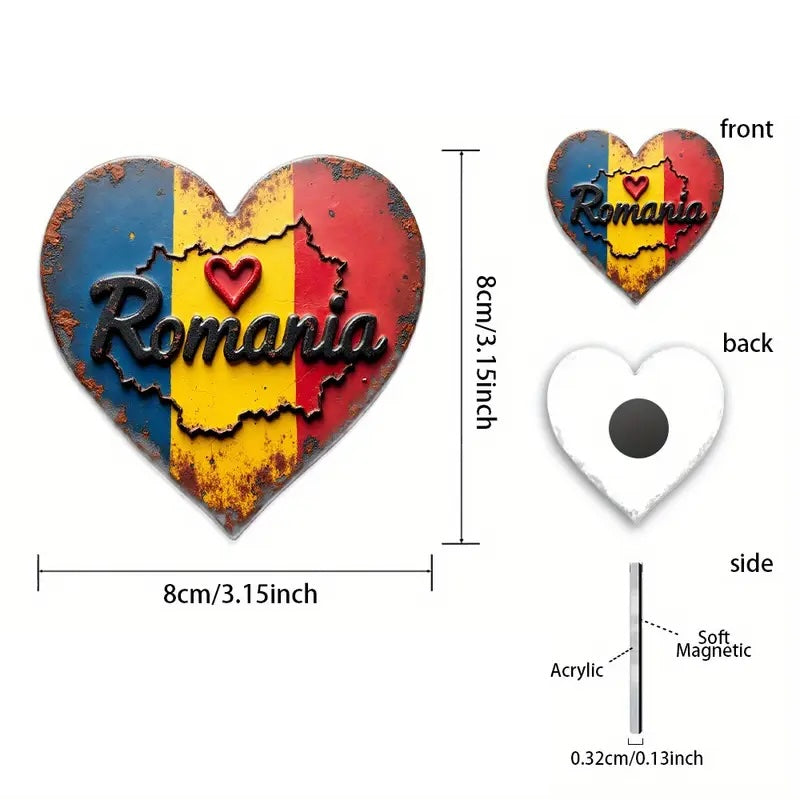 Sărbătorește-ți dragostea pentru România cu acest magnet - Inima României, o amintire vibrantă, concepută pentru a surprinde spiritul națiunii într-o piesă atemporală. Fabricat din acril premium, acest magnet se mândrește cu o formă de inimă, împodobită cu culorile vii de albastru, galben și roșu ale drapelului românesc, artistic patinat pentru un farmec vintage. Inscripția „România” adaugă o notă de eleganță, făcând din acest magnet atât un tribut patriotic, cât și un accent decorativ elegant.